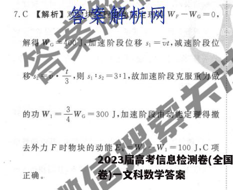 2023届高考信息检测卷(全国卷)一文科数学答案,目前全国100所名校答案网已经汇总了2023届高考信息检测卷(全国...