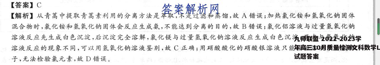 九师联盟 2022-2023学年高三10月质量检测文科数学L试题答案,目前全国100所名校答案网已经汇总了九师联盟 2022-2023学年高三10月质量检测文科数学L试题答案的各科答案和试卷,更多全国100所名校答案请关注本网站。
