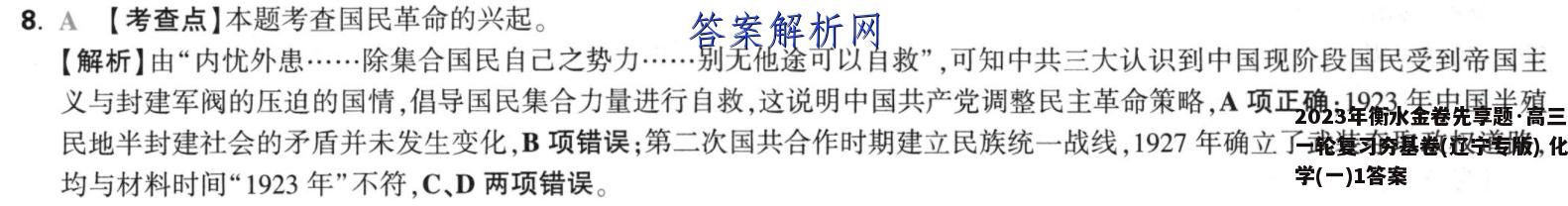 2023年衡水金卷先享题·高三一轮复习夯基卷(辽宁专版)化学(一)1答案,目前全国100所名校答案网已经汇总了202...