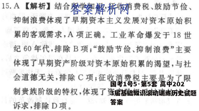 国考1号5·第5套高中2023届基础知识滚动训练历史试题答案,目前全国100所名校答案网已经汇总了国考1号5·第5...