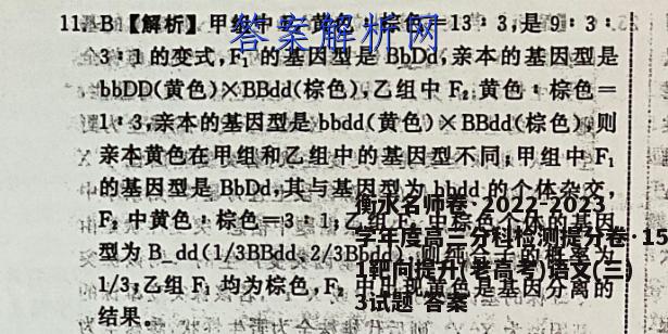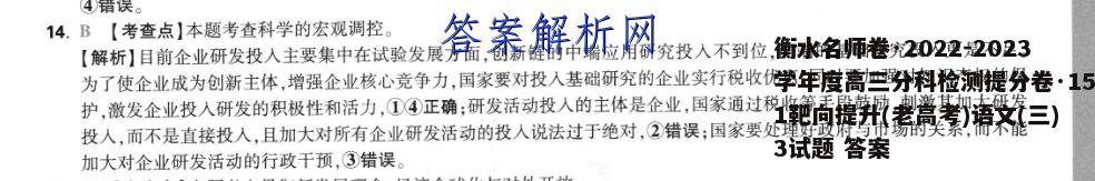 衡水名师卷·2022-2023学年度高三分科检测提分卷·151靶向提升(老高考)语文(三)3试题答案,目前全国100...
