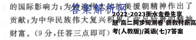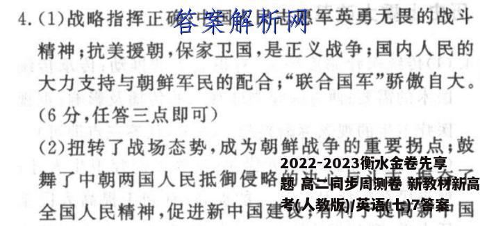 2022-2023衡水金卷先享题高二同步周测卷新教材新高考(人教版)/英语(七)7答案,目前全国100所名校答案网...