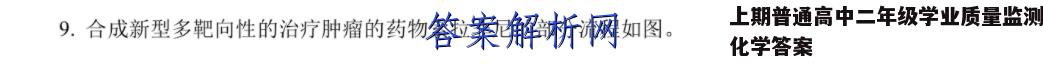 9.合成新型多靶向性的治疗肿瘤的药物索拉非尼的部分流程如图。CH.NH,THF/CH,OH℃OOH-C13℃C-NHCH,0XYZ下列叙述错误的是A.X结构中所有原子可能共面B.Z中含氧官能团名称为酰胺键(或酰胺基)C.X的环上二氯代物有6种D.Z的分子式为C,H N,OCI【答案】D【解析】【详解】A.旋转碳氧单键,可以使-COOH中原子共面,旋转碳碳单键可以使羧基的平面与六元环平面重合,故X结构中所有原子可能共面,故A正确:B.Z中含氧官能团名称为酰胺键,故B正确:C.X的环上有4种氢,任意2个H原子被取代有4×36种情况,即X中环上二氯代物有6种,故C正确;D.Z的分子式为C,H,N,OCI,故D错误:故选:D。