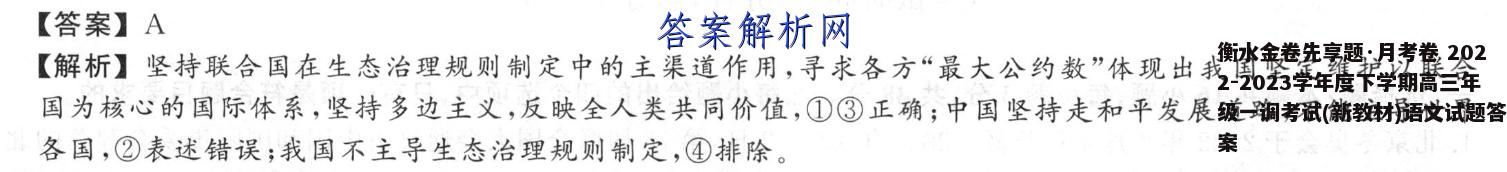 衡水金卷先享题·月考卷2022-2023学年度下学期高三年级一调考试(新教材)语文试题答案,目前全国100所名校答案...