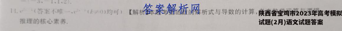 陕西省宝鸡市2023年高考模拟试题(2月)语文试题答案,目前全国100所名校答案网已经汇总了陕西省宝鸡市2023年高考...