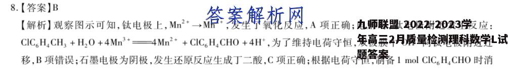 九师联盟2022-2023学年高三2月质量检测理科数学L试题答案,目前全国100所名校答案网已经汇总了九师联盟20...