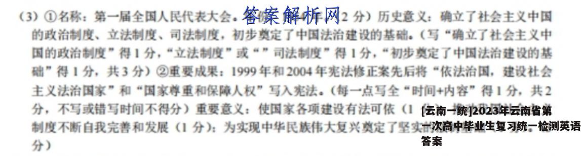[云南一统]2023年云南省第一次高中毕业生复习统一检测英语答案,目前全国100所名校答案网已经汇总了[云南一统]2023年云南省第一次高中毕业生复习统一检测英语答案的各科答案和试卷,更多全国100所名校答案请关注本网站。