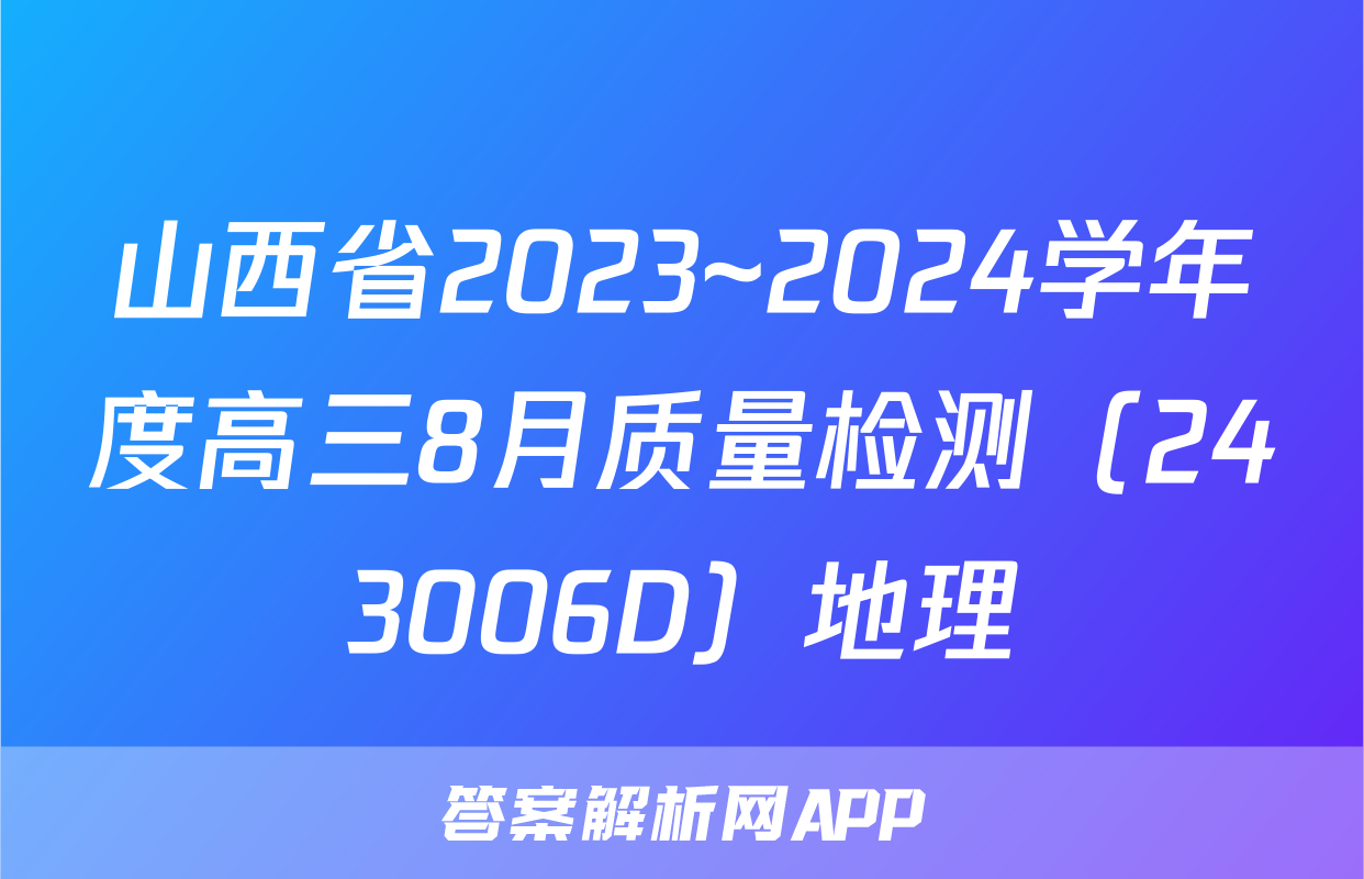 1、九师联盟 山西省20232024学年度高三无标题考试答案(地理)