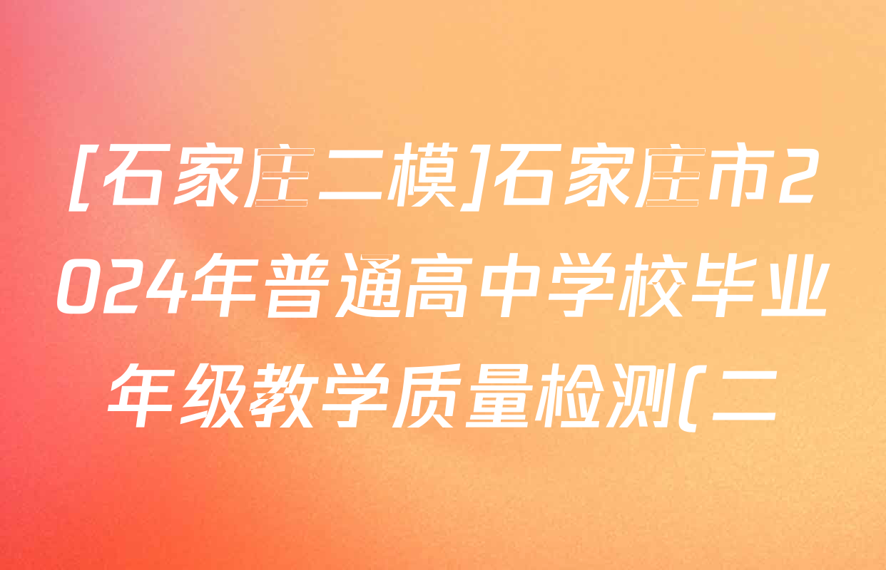 [石家庄二模]石家庄市2024年普通高中学校毕业年级教学质量检测(二)试卷及答案汇总(含化学 政治 物理等9份)即将拉开帷幕
