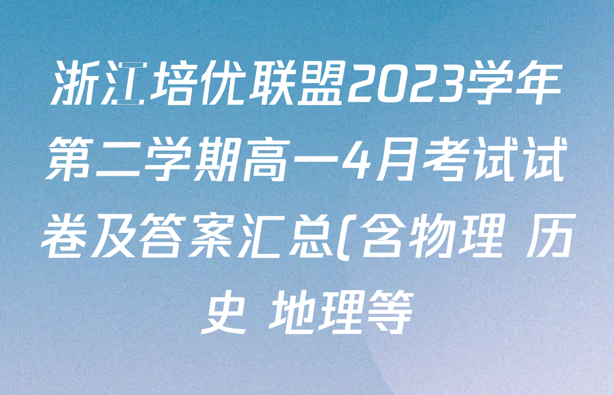 浙江培优联盟2023学年第二学期高一4月考试试卷及答案汇总(含物理 历史 地理等)浙江培优联盟2023学年第二学期高一4月考试试卷及答案汇总(含物理 历史 地理等)即将拉开帷幕,包括生物 政治 数学 化学 语文等10大科目。陈老师将确保在每科目考试结束后,及时更新并提供最新答案和试卷,以便同学们能够及时参考。