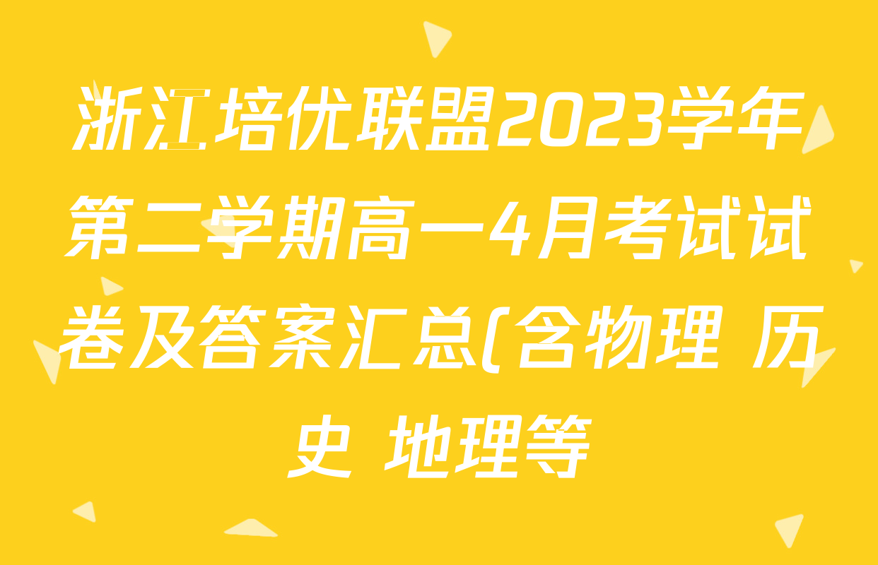 浙江培优联盟2023学年第二学期高一4月考试试卷及答案汇总(含物理 历史 地理等)即将拉开帷幕