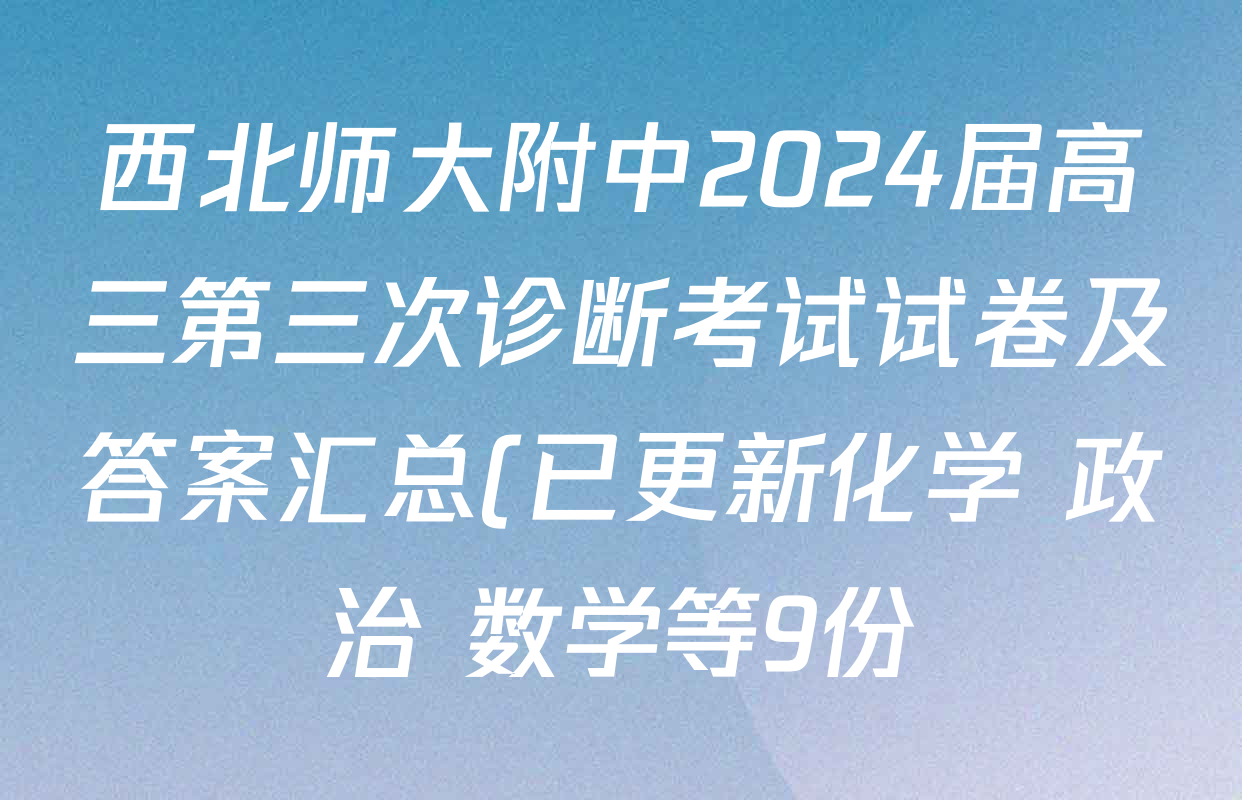 西北师大附中2024届高三第三次诊断考试试卷及答案汇总(已更新化学 政治 数学等9份)即将拉开帷幕