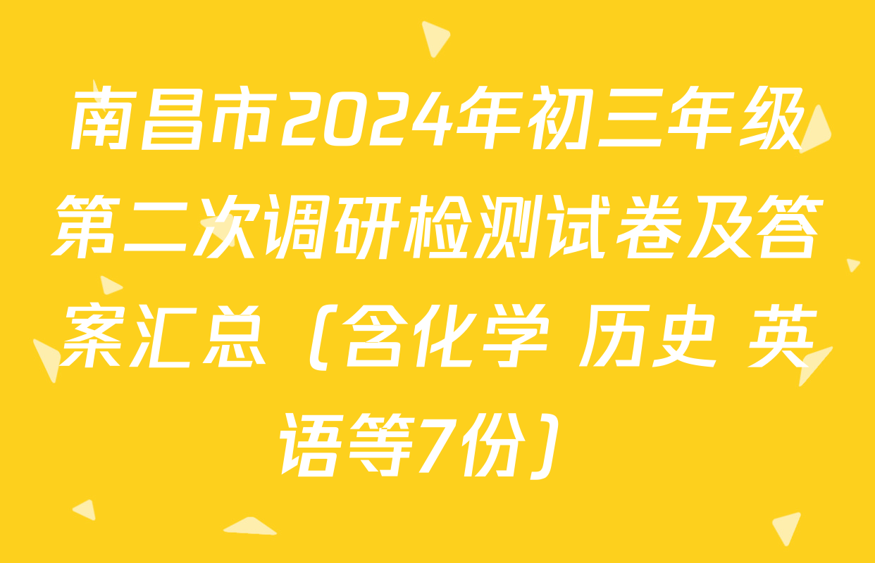 南昌市2024年初三年级第二次调研检测试卷及答案汇总(含化学 历史 英语等7份)
