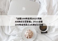 全国100所名校2023河南AB测试示范答案今天我们一起来聊一下全国100所名校2023河南AB测试示范答案,下面是有关于全国100所名校2023河南AB测试示范答案的6个不同的看法和观点。希望可以对您有帮助!2021全国100所名校高三ab测试示范卷2021年河南省三...