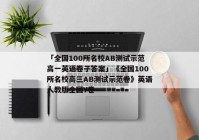 全国100所名校AB测试示范高一英语卷子答案今天我们一起来聊一下全国100所名校AB测试示范高一英语卷子答案,下面是有关于全国100所名校AB测试示范高一英语卷子答案的6个不同的看法和观点。希望可以对您有帮助!《全国100所名校高三AB测试示范卷》英语人教版全国Y卷《全...