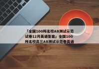 全国100所名校AB测试示范高三英语试卷答案今天我们一起来聊一下全国100所名校AB测试示范高三英语试卷答案,下面是有关于全国100所名校AB测试示范高三英语试卷答案的6个不同的看法和观点。希望可以对您有帮助!全国100所名校高三AB测试示范卷英语《全国100所名校高三...