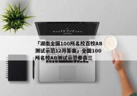 湖南全国100所名校百校AB测试示范12月答案今天我们一起来聊一下湖南全国100所名校百校AB测试示范12月答案,下面是有关于湖南全国100所名校百校AB测试示范12月答案的6个不同的看法和观点。希望可以对您有帮助!全国100所名校AB测试示范卷高三全国100所名校AB...