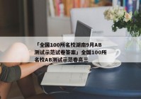 全国100所名校湖南9月AB测试示范试卷答案今天我们一起来聊一下全国100所名校湖南9月AB测试示范试卷答案,下面是有关于全国100所名校湖南9月AB测试示范试卷答案的6个不同的看法和观点。希望可以对您有帮助!全国100所名校AB测试示范卷高三全国百所名校高三ab测试示...