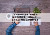 高一期末考试全国100所名校AB测试示范答案今天我们一起来聊一下高一期末考试全国100所名校AB测试示范答案,下面是有关于高一期末考试全国100所名校AB测试示范答案的6个不同的看法和观点。希望可以对您有帮助!全国100所名校高三AB测试示范卷数学第十六套全国100所名...